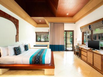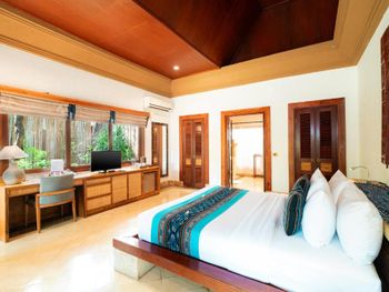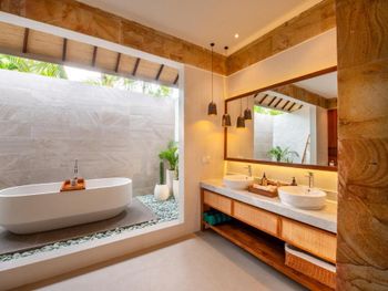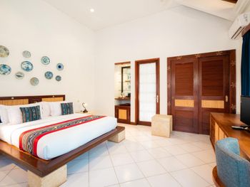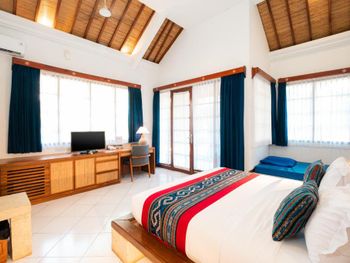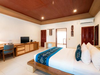 Номера курортного отеля Villa Almarik, оформленные в современном стиле острова Ломбок с использованием голубых тонов, оснащены кондиционером. С собственных террас открывается вид на сад. В числе удобств просторная гостиная зона с диваном, телевизор со спутниковыми каналами и мини-бар.