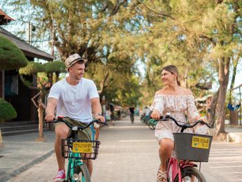 классный отель, большие виллы, напротив пляж с красивым коралловым рифом, мы там видели черепах! белый песок, лазурный берег, живописные качели и гамак. Помогли с велосипедами. Он пристани 950 м, мы и туда и обратно ходили пешком с чемоданами, на мой взгляд, не далеко. Осталось отличное впечатление. Были некоторые недостатки, кондиционер слабенький, немного уставший ресторан, но это мелочи.