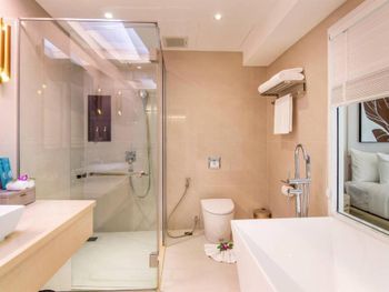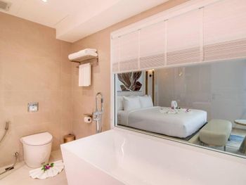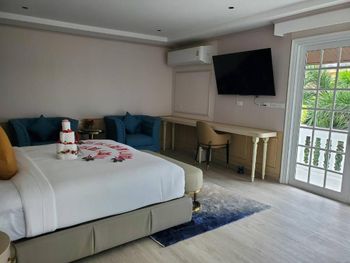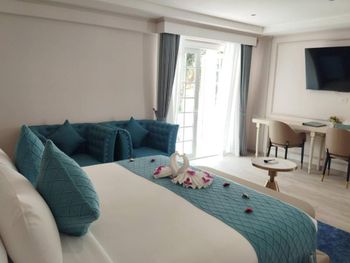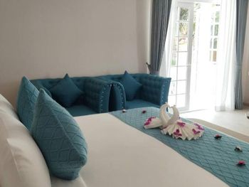 Прекрасное расположение виллы - три минуты ходьбы до пляжа. Тихое место. Хороший бассейн. Красивая уютная территория. Вежливый предупредительный персонал. Семейный номер в пентхаусе огромный и очень подходит для семьи с двумя детьми как у нас.