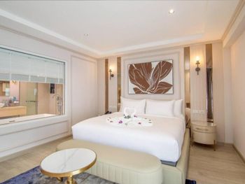 Очень понравилось чуткое отношение персонала, немного однообразный, но очень сытный и вкусный завтрак, очень вкусный омлет с овощами, панкейки, фрукты и овощи набираешь сам, вкусный кофе, йогурты, мёд, для желающих есть мюсли и молоко, сок. Завтрак с 7 до 10, это очень удобно, если едешь на экскурсию, успеваешь нормально поесть, также как и если хочешь выспаться или сходить на пляж до завтрака. На ресепшене можно попросить погреть в микроволновке свою еду, купленную в маркете. При желании можно заказать обед, но мы в основном обедали в кафе. Очень чисто в номере, убираются и меняют полотенца каждый день. Мы отдыхали в пентхаусе, кровати были удобные, хорошие матрасы. Очень удачное расположение отеля, и тихое место и рядом с самым чистым пляжем на Патонге, идти до пляжа 3 минуты. Этот пляж не подвержен приливам и отливам, они конечно есть, но купаться можно в любое время, заход в море всегда хороший. Мы купались и рано утром и ночью в 23 часа, вода всегда прозрачная, море рыбок. В отеле царит приятная расслабляющая атмосфера, хороший бассейн с джакузи. Контингент отдыхающих - в основном европейцы. На улицу с магазинами, кафе и массажками можно пройти дойдя до моря, а можно срезать со двора и пройти между домами, это намного ближе. Очень удобно, если нужно пойти в сторону Бангла Роуд. При отъезде на ресепшене вызвали такси в аэропорт за 800 бат. Таксист приехал чётко в срок. Депозита при заезде нет. В общем отель очень понравился, рекомендую!