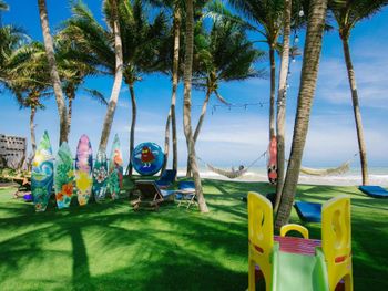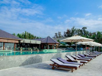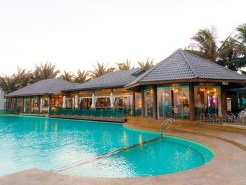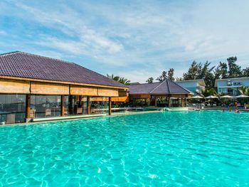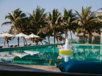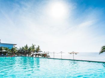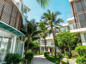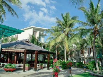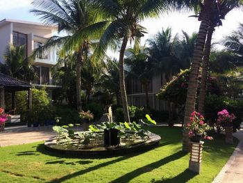 Близко к пляжу, пляж обычный Вьетнам стаил, рассчитывать на поплавать не всегда можно, грязный,но это от моря зависит, сезона. Кафе которое на территории очень-очень дорогое! Не советую там кушать, лучше перейти через дорогу и будет очень много вкусных кафе. В кафе стоит кушать только если включен завтрак(в целом он включен всегда вроде у них). Место тихое, до магазинов и других подобных сити-кафе ехать не дешево.Если вы бандой, то норм, на такси скинулись и поехали.
