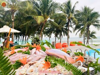 Близко к пляжу, пляж обычный Вьетнам стаил, рассчитывать на поплавать не всегда можно, грязный,но это от моря зависит, сезона. Кафе которое на территории очень-очень дорогое! Не советую там кушать, лучше перейти через дорогу и будет очень много вкусных кафе. В кафе стоит кушать только если включен завтрак(в целом он включен всегда вроде у них). Место тихое, до магазинов и других подобных сити-кафе ехать не дешево.Если вы бандой, то норм, на такси скинулись и поехали.