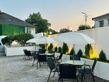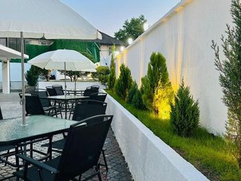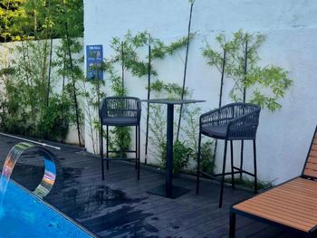 Бронировали самый дорогой номер на неделю. Несмотря на внешне приятную картинку всюду чувствуется экономия и наплевательское отношение - кухонный шкаф не закрывается полностью, от стола отклеивается кусок покрытия, дверные ручки расхлябаны и разваливаются, в ванной пахнет плесенью (к слову об обслуживании - видно, что раньше была перегородка, отделяющая ванную от остального санузла, но она, видимо, отвалилась, и теперь от нее остались только следы клея на стене), не ведется обслуживание стиральной машины, и она возвращает вещи с неприятным запахом; у кромки бассейна отвалилась плитка и покрытие проваливается до металлической конструкции; один из стульев уже был в непригодном состоянии, остальные - низкого качества и со следами трещин и ржавчины. Чувствуется, что когда-то (со слов хозяина 2 года назад) был сделан ремонт (при этом хозяин экономил уже тогда), и с тех пор ничего не обновлялось и ремонтировалось. На все это мы не обращали внимания, концентрируясь на положительных моментах. Но когда под одним из нас развалился стул (человек просто сел на него, никаких усилий, чтобы как-то повредить стул, приложено не было), все положительные впечатления были разрушены. Узнав о поломке, хозяин сразу начал обвинять нас, и "дал нам время" до 6 вечера, затребовав за поломанный стул 500 лари (15 000 рублей на 10.2025). На просьбы приехать лично или найти кого-то, с кем мы можем обсудить ситуацию, агрессивно отказывался, начал обвинять нас, что мы не пускали в номер сотрудницу отеля сфотографировать поломку (на вопрос, зачем нам это, он не ответил). Не желая терпеть агрессию, вымогательство и откровенную ложь, мы решили съехать. В течение следующих суток хозяин отеля продолжал писать в ватсапп, колеблясь между угрозами: "будут последствия", "был бы я там (он отказался приезжать), вы бы со мной так не разговаривали (рассчитывая на мирное решение, мы общались предельно вежливо)" - и попытками убедить нас вернуться.