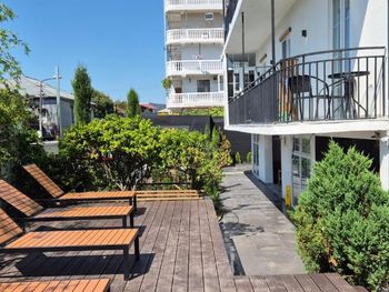 Отель очень уютный, хорошее расположение - находится в центре, при этом до пляжа не сильно далеко. Основной дороги не слышно, достаточно тихо на территории. Больше всего понравилась компоновка номеров (индивидуальные входы), общие кухни на два номера. Как-то это очень гармонично сгруппировано, что ты и можешь общаться с соседями если хочешь, а если не хочешь, то можешь уединиться в номере. Хороший персонал ( молодая семейная пара), вопросы решались сразу и с участием.