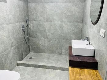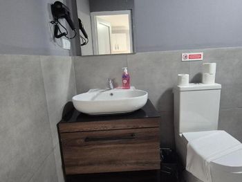 В санузле не хватает шторки для душа, полочки для зубной щетки, шампуня и т.п и вешалки для полотенца.