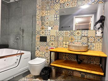 Отмечу два пункта, они не критичные, но можно над этим поработать: - санузел: совмещенный и душ никак не огорожен. Это частая практика в Грузии, но жутко не удобно. Номер на 4х, после того как все помоются, мокрое все. Весь пол в воде, раковина, унитаз, туалетная бумага.. плюс за счет этого пол скользкий, ребенок подскользнулся и упал. Минимальный поддон и шторка решили б проблему. - двери. А точнее их закрывание. Очень туго, с большим усилием. Приспособились быстро, но каждый раз было страшно сломать.