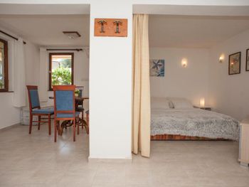 Уютный, чистый номер, со всеми нужными удобствами, стиральная машина находится внизу, всё остальное есть в самом номере (плита, кондиционер, телевизор). Номер недалеко от моря, всего 5 минут пешком, в саду оливковые деревья и апельсины - очень уютная средиземноморская картина. Имеется весь необходимый набор посуды, столовых приборов. Очень дружелюбные, чуткие и гостеприимные хозяева. Постоянно предлагали помощь, интересовались условиями проживания. Остались под очень приятным впечатлением!