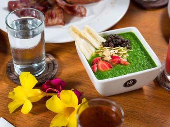 В ресторане Lumbung с прилегающим баром у бассейна и садовыми террасами подают разнообразные блюда азиатской и западной кухни, которые также можно заказать в номер.
