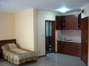 Четырехместный апартамент-студио состоит из комнаты, совмещенной с кухней, санузла и террасы. В апартаменте: двуспальная кровать, односпальная кровать, односпальный раскладывающийся диван.