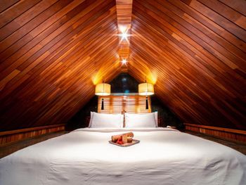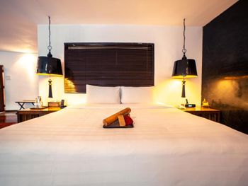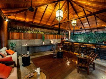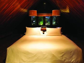Built with a charming mixture of bamboo and concrete, the spacious air-conditioned rooms are equipped with a flat-screen TV and minibar.