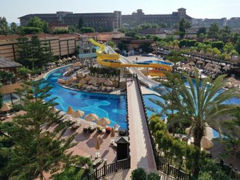 Во-первых, четверть номеров имеет вид на кладбище. С третьего этажа с балкона очень живописно смотрятся белокаменные могилки. Но это кому как, мой сын например был в восторге, он как поклонник ужастиков решил что это я специально ему такой подарок сделала. Вечером пошли читать надписи на надгробиях, Кстати, эта сторона солнечная, белье на балконе сохнет превосходно, а жители противоположного крыла жаловались на сырость, проходили говорят весь отпуск в мокрых вещах, ничего не сохнет. В номере, который выходил на бассейн и внутреннюю часть отеля, очень жаловались на запах от гриля, вока и шум от шоу. Во-вторых, ужасная анимация. Про детскую даже не хочу говорить, пяток немецких песен и дети под них за ручки взад--вперед по паре шагов ходят вечером. Днем для детей нет ничего. Зевающие аниматорши, им самим скучно. Взрослая анимация-трэш. Двое или трое аниматоров-мужиков все время переодеваются в колготки с рваными швами, юбочки надевают парики и надувные сиси (пардон, пишу как есть). Подходят ко всем у бассейна, у ресторана, предлагают потрогать за всякие места, обнимаются и фотографируются. Их в основном посылают подальше все, даже немцы. Дети смотрят, открыв рот. Это не разовая акция, а практически каждый день. Из плюсов-есть поло на воде, гимнастика для женщин, степ-аэробика. Больше анимация не занимается ничем. В-третьих, проход на пляж по сырому коридору, потом по городской территории. Электромобиль ходит 10.00-12.00, потом обед и вообще водитель очень недоволен жизнью и где-то скрывается, народ его ждет по 10 минут и идет пешком. Так дотягивает до 17.00, потом все просто ходят пешком.