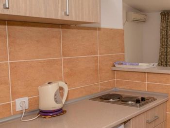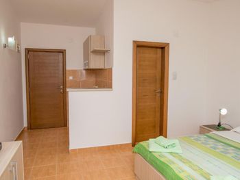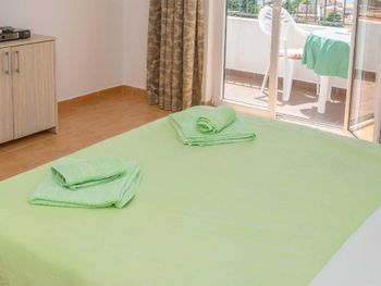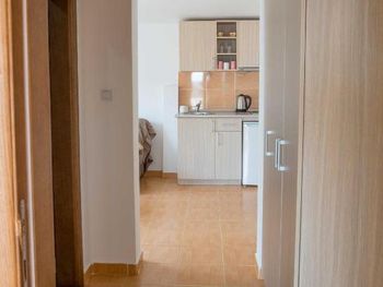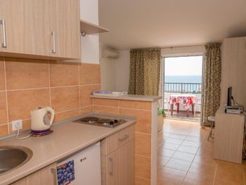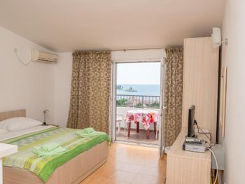 Очень понравились хозяева, такие позитивные и отзывчивые. У меня аллергия на перьевые подушки, сначала в номере были они, но потом по моей просьбе без проблем поменяли на другие. Уборка номера хорошая. Терраса с видом на море тоже очень понравилась. На кухне есть все для приготовления пищи. Кондиционер установлен так что не дует на кровать и тем самым не может продуть. Очень тихо и спокойно.3 пляжа расположены от 10-25 минут. Тут как в сказке три пляжа прямо, направо и налево. Если пойдете на пляж направо то будете проходить по тропе здоровья с которой открываются потрясающие виды. Слева от вас будет море, справа сосны. Потом пройдете по туннелям и попадете на пляж где менее многолюдно. Если идти от гостиницы налево то попадете на пляж "Лучице", там будет интересно покупаться с маской, можно увидеть осьминогов, морских ежей и разноцветных рыбок. Ну и если идти направо то попадете на пляж вдоль которого расположены кафе, магазины и рестораны. Вода везде прозрачная, чистая.