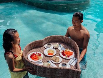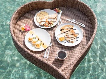 Для гостей сервируется завтрак «шведский стол», завтрак по меню или континентальный завтрак. При Rossa Garden Hotel Boutique работает ресторан, где подают блюда французской кухни, блюда индонезийской кухни и морепродукты. Гости могут попросить приготовить вегетарианские, безлактозные и веганские блюда.