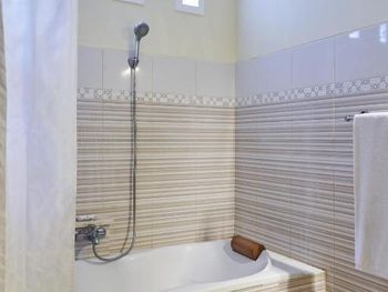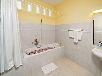 У нас были какие-то проблемы с горячей водой. Плохой напор. Пляж возле отеля не очень подходит для долгого пребывания там. Сбегать с утра искупаться можно, вода чистая, но там нет ни зонтиков, ни лежаков. Поэтому мы ездили на пляж Вирджин и отдыхали там.
