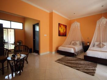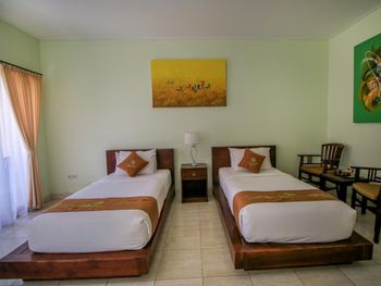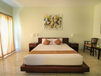 Отель небольшой,очень зеленая территория,сотрудники следят за порядком,ухаживают за территорией.уборка была ежедневно.номера типичные для Бали,аскетичные,но есть все необходимое.постель меняют каждый день.завтраки можно выбрать по списку ежедневно:блины,омлет,каша,тосты,вполне сытные,я осталась довольна. В пяти минутах от отеля есть 2 выхода к океану,но купаться там неудобно,можно чисто отдохнуть и насладиться рассветами и закатами.ездила купаться на White Sand Beach,можно найти такси прям на выходе из отеля,всегда есть отзывчивые шофера.также можно найти трансфер через ресепшн отеля.рядом с отелем есть маленькие ресторанчики,еда простая и вкусная.также есть лавки с фруктами и напитками. Самая большая ценность отеля это его работники.очень отзывчивые и всегда приветливые,готовы помочь в любом вопросе.однозначно рекомендую отель для спокойного и размеренного отдыха! И еще! Можно в отель пригласить массажисток,которые за совсем небольшие деньги сделают потрясающий массаж. Спасибо большое за мой потрясающий отдых!