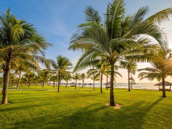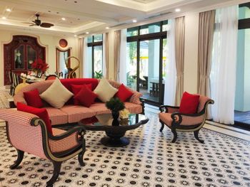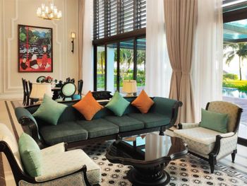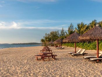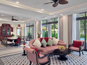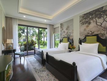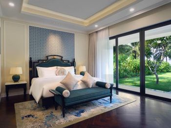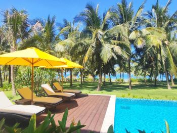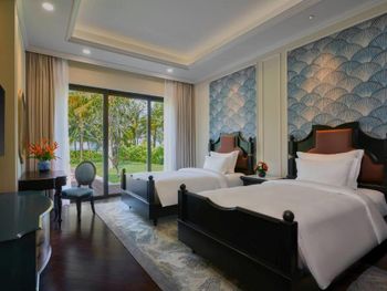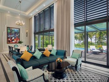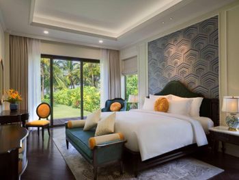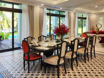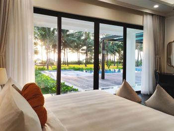 Персонал не обучен. Ни по английски, ни по русски не говорит. Питание отвратительное. Кроме макарон, есть просто нечего. Если что-то достойное появляется, то сразу народ накидывается и ничего не остаётся. Фрукты очень хорошие, но их постоянно надо караулить. За завтраком очередь за кофе на 30 мин, т.к. только одна кофемашина на весь ресторан. Напитки у нас не были включены, но те что включены качества низкого (пиво 333 или tiger, вино из коробок:(( мы заказывали за деньги и при том, что цена в 4 разв выше, чем в магазине, допроситься невозможно. То говорят закончилось, то несут по 30 минут, то приносят горячее шампанское, то забыли стаканы:(((( в общем за захочешь выпить, намаешься. Элементарных кокосов на пляже при цене 100.000 донгов (20.000 на рынке) никогда их нет!!! (Только у бассейна, да и то не факт) персонал вообще не обучен, ничего не понимает, делать ничего не умеет (в общем соц. лагерь). Убору в номере делали плохо, забывали полотенца, белье меняли, только если позвонить на ресепшн и пожаловаться на плохую уборку! Опытным путешественникам, побывавшим в разных странах и имеющим претензии к качеству сервиса 5*, в этом отеле, да и вообще во Вьетнаме, делать нечего. Будет одно разочарование.