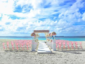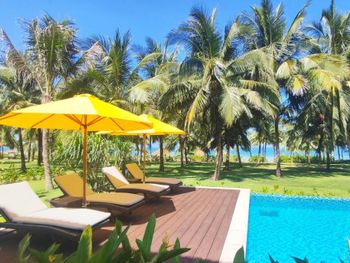 на пляже отсутствуют деревья, только грибочки которые не обеспечивают защиту от солнца, на пляже отсутствует бар напитков, питание в ресторане и обслуживающий персонал ресторана желает лучшего, в пятизвездочный отель приезжают местные отдыхающие которые не соблюдают правил гигиены и поведения