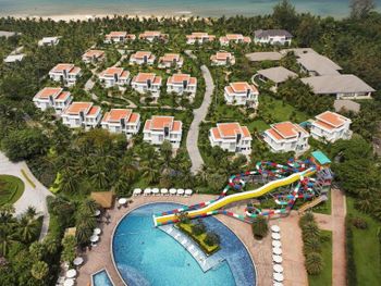Обычный курортный резорт. Хороший бассейн и горки. Есть свой классный пляж. Сам номер был обычным, с балконом. После 22:00 тишина. Подходит только для отдыха по путевке.