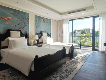 Это не 5 звёзд! При заселении нас почему то не сфотографировали для доступа к услугам по Face ID (в этом отеле это вход в ресторан, аквапарк), вообще, как мы потом поняли, нас, как то изначально криво оформили при заселении, что-то не до конца сделали на ресепшн. В подтверждение этого, в первую же ночь к нам в номер спокойно вошли люди с чемоданами заселяться, оказалось на рессепшен выдали совершенно другим людям Карту ключ в наш номер, это как? После этого начались проблемы с ключами, уходим на пляж или завтрак, приходим дверь не открывается, наверное раз 5 обращались на ресепшн, чтобы решить эту проблему. Решилась она только тогда, когда нас сфотографировали для пропуска по Face ID. В день когда мы заселялись у меня был День Рождения, так как мы часто ездим в это время отдыхать, всегда было приятно когда в отеле где отдыхали об этом знали и уделяли какое то персональное внимание (бутылочка вина, корзинка с фруктами, скидка в ресторане или спа и тд), в этом отеле не надейтесь, НЕЗАМЕТЯТ, или это коснулось только меня( Утром, в течении несколько дней наблюдали очереди на входе в ресторан на завтрак, извините но мы не готовы стоять по 10 минут и ждать (причина банальная вход по Face ID, у многих не срабатывает, всего пара девушек администраторов, они просто не успевают), во всяком случае в отелях 5 звёзд так не должно быть. Также пожелание - продлите завтраки до 11:00, все таки люди отдыхать приехали и хочется выспаться. Завтраки однообразные и безвкусные, нет свежевыжатых соков, хорошо, что мы неделю всего там проживали. К вопросу про кофе на завтрак, там реально одна кофемашина в каждом ресторане, толпа народа стоит и одна машина‼️ Мини бар в номере пустой, пришлось самому его заполнять) Очень много китайцев, скажете, а где их сейчас нет? В нашем втором отеле на Фукуоке их совсем нет и это огромный плюс. Вообщем где то на третий день я с тоской подглядывал с балкона на соседний Рэдиссон и думал почему мы не там.
