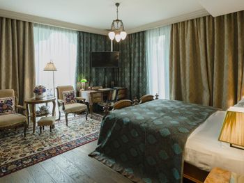 Очень классный отель. Аутентичный, роскошный…Кровать шикарная очень удобная. Завтраки наивкуснейшие . Особенно понравилось на завтрак шампанское. Завтраки и ужины сопровождались живой музыкой, отдельное спасибо пианисту. Персонал внимательный и услужливый. Мы были на машине , парковка была предоставлена. Расположение отеля удачное все , достопримечательности в шаговой доступности.Обязательно сюда ещё вернёмся.