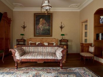 Атмосферный отель с антикварной мебелью и отделкой.