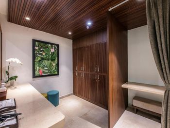 НЕТ шумоизоляции в номерах. Наши соседи были настолько громкие, что нам пришлось переселиться в другой номер, при том что нам дали номер меньше. Но даже съехав от шумных соседей - мы слышали разговоры других соседей за стенкой. Слышны будильники и как звонит телефон. Старые кондиционеры с управлением на стене. Розетки под тумбой, чтобы до них дотянуться - надо ложиться на пол. Огромные очереди на завтраке за кофе. Цены в меню ресторана доставки в номер высокие, но еда невкусная. В общем отель не 5 звезд. Здесь лучше бронировать виллу.
