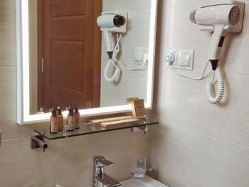 Была засорена раковина но мы не успели сообщить, как то мало времени было на это) Надеюсь сейчас персонал увидит этот момент и исправит.
