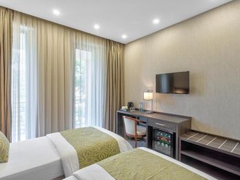 Гостиница в общих чертах неплохая. Единственное вместо двух местной кровати дали с двумя отдельными кроватями и сами кровати были ужасно жёсткими, практически не спал. Завтрак был нормальный и самое главное тёплый в отличие от других гостиниц где оставался. Номер был хороший, чистый и все работало. Сам район может быть не самый лучший, но посколько такси здесь стоит до центра полтора евро это не составило проблемы. Бассейн чистый и тёплый. Если поменяет матрасы, тогда будет достойная гостиница. Если вы любитель спать на жёстком матрасе тогда советую, всё остальное достойное