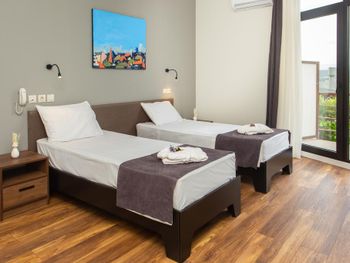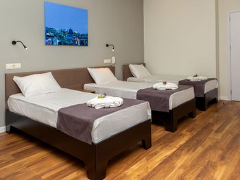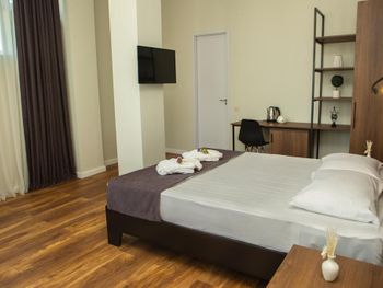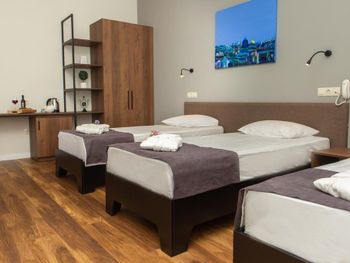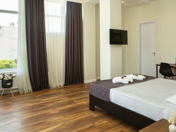 Гостиница находится на горе. Номер заказали с балконом с видом на город. При открытых окнах не было слышно шума города. Все в комнате очень удобно и компактно. Очень пригодился шкаф-стелаж. Остались хорошие впечатления от проживания. Мокрую уборку проводили каждый день, что было очень приятно.