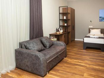 Отель находится в очень красивом и спокойном месте, машину есть где припарковать, что ооочень удобно. Бронировали один номер, по факту заселили в другой, потому что в нашем номере как оказалось кто то жил, хотя бронь почему то была открыта. Заселили в номер меньше и с совершенно другим видом. Администрация отозвалась и показала все таки нам наш номер, который изначально бронировался, предложили заехать в него как только освободится, т е попытались решить проблему, а не отнекивались, что порадовало. Вопросы вызвала цена, которая почему то была точно такая же на номер, что нам по итогу достался, сказали что так и стоит на самом деле, но хз, другой вид и площадь меньше, не знаю как он может стоить столько же. В общем заплатили ту же цену, за номер который мы не бронировали. НО отдохнули в итоге все равно хорошо, все отзывчивые. Советую несколько раз проверять тот ли номер вы бронировали, потому что вначале нас уверяли что мы ТОЧНО БРАЛИ этот номер ( по фоткам в букинге мы показали что НЕТ ). Кстати, нам объяснили еще что они не загружали фотки всех номеров, так что это может оказаться "заглушка", а не фото вашего номера при бронировании. По завтракам средненько. Вид шикарный.