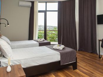 Отличный отель с очень гостеприимным персоналом!!! Расположен на вершине, поэтому воздух чище и свежее. Шикарный вид на город. Спокойный район расположения.До Площади свободы, канатной дороги, Макдоналдс пешком минут 10-15. Номер был чистый, удобный. Рядом с отелем есть магазин, фруктовый ларёк, ресторан.