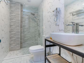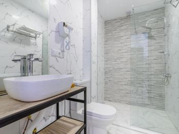 всю ночь безумно гудела/шумела вытяжка в ванной (общая вентиляция), которую невозможно было выключить; невозможно открыть окно - только балконная дверь и нараспашку (вертикально нельзя), что при сильном дождемера критично; только ночью увидели отсутсвие одеял в номере