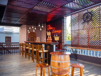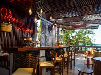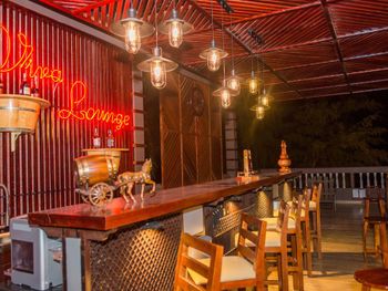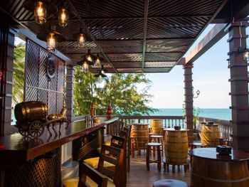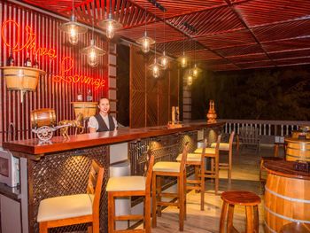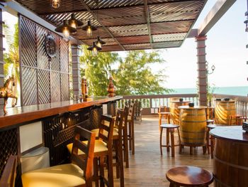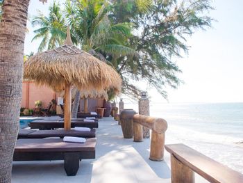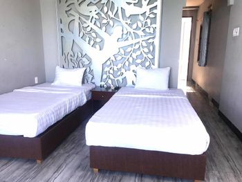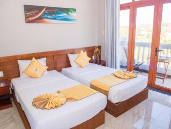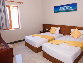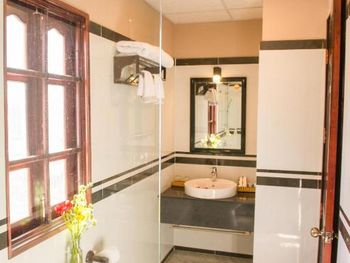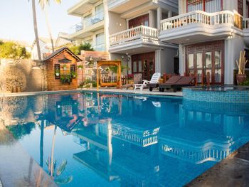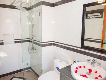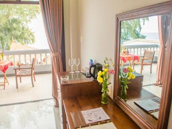 Отель совсем небольшой, органичен со стороны моря стеной, о которую бьются волны. В результате полежать у самого моря невозможно. Спрятаться от знойного солнца тоже нельзя. В отеле только два навеса, под которыми место для четырёх человек, остальные вынуждены обгорать. У нас был двухместный номер на первом этаже. Мимо окон которого ходят отдыхающие, пришлось на все время отдыха зашторить окна и находиться в номере без дневного света. И в каждом номере просто отгороженная стеклом туалетная зона. Так что видно все снаружи, что делает человек в туалете внутри. Не представляю, как чувствуют себя в номере молодожены или разнополые дети с родителями!