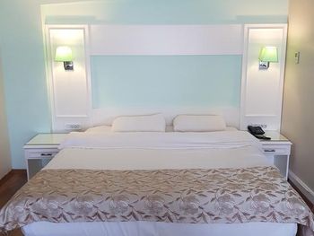 Нам сделали еще и апгрейд, достался номер с двухэтажной кроватью, постельное больше не особо комфортное, подушки неудобные. В общем то чисто. Пришли на завтрак, все столы заняты, либо горой посуды на столах, либо людьми, завтрак вполне приличный - турецкий, без шведского стола.