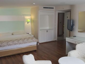 Мы сняли улучшенный номер в терассой, терасса в понимании этого отеля это бетонный балкон с пластиковыми сломанными креслами-всё! ни растений, ни красивой удобной чистой мебели и ни комфорта на этой терассе не было. Заселяли нас в номер в 6 вечера и в нем накопилась вся жара с крыши отеля, и к 10 вечера номер так и не успел охладиться мы спали в духоте, мы попросили дать нам хотябы вентилятор, нап принесли и тот был сломан…а еще, номера такой категории находятся на 6-м этаже, лифт идет только до 5-го дальше пешком, а мы были с коляской..лифт ОДИН и, порой мы ждали минут 10 чтобы спуститься вниз, тк лифт был занят другими гостями. во всех зонах, кроме лобби (коридоры, лифт, лестница) нигде нет конлиционеров и везде ужасная духота и жара. завтраки: это не шведский стол - это турекций завтрак со всевозможными жареными и жирными продуктами, мы сходили один раз и дальше завтракали в других заведениях. надо сказать, что с отелем настолько «не сложилось», что мы уехали раньше чем забронировали даты.
