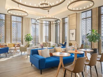 Фирменный ресторан The Social состоит из 2 зон, крытой и на свежем воздухе. Здесь подают лучшие в Дохе блюда западной, восточной и ближневосточной кухни с обслуживанием по меню, а также сервируют уникальный завтрак «шведский стол».