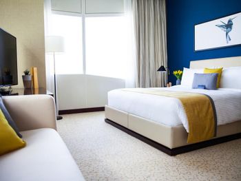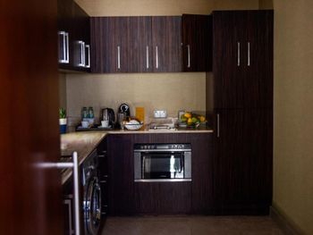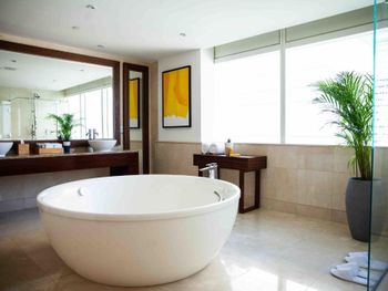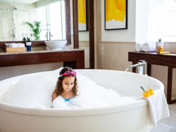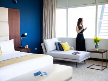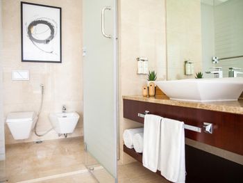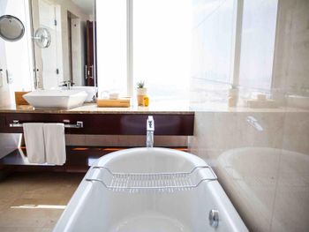 Номер был не очень чистый (хотя на фото все выглядит довольно прилично), видно жирные следы от рук на дверях, на изголовье кровати. Когда персонал приходил убираться, он зашёл в ванную без тряпок и моющих средств, и закрыл за собой дверь, то есть непонятно чем он убирал ванную. Я не видела там никаких полок, комодов, где можно содержать чистящие средства. Мы решили потом самим купить моющее средство и тряпки, и помыть комнату. Также техника в не очень хорошем состоянии. Попросили заменить, но принесли то же самое, видимо у них вся она такая. Фен работает буквально пару минут потом отключается, утюг протекает и испортил недешевое платье. Мы уже не стали из-за этого разбираться ввиду нашего плохого английского. Та же ситуация с якобы красивым видом из бассейна. Стёкла, которые огораживают, ужасно грязные, уже не так приятно смотреть на город.