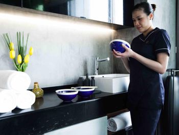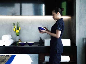 Раздевалка со шкафчиками в фитнес-центре / спа-салоне
