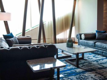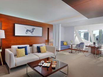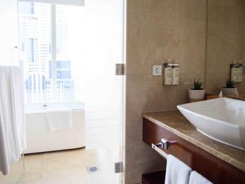Ночью заселялись. Очень долго что-то оформляли. Искали оплату, пытались внести депозит... Привык с booking.com войти, паспорт, пошёл в номер. Тут - возня необъяснимая. Вроде, приветливые и стараются, но ты стоишь у стойки долго и не понимаешь, чего сделать, чтобы это ускорить. И днём неинтересно так стоять, а ночью более двадцати минут обслуживания заселения, по-моему, перебор. А если учесть, что это по $500 за ночь, то неприятно абсолютно. Слот для карты на входе нашёл только когда рассвело. Видимо, он помигал вначале, а потом погас. Включатели света замороченные, в туалете так и не смог выключить. Брал номер для курящих. Практически все поверхности у мебели со следами подпалин от сигарет. Пепельницы нет. А из-за выставки некогда позвать персонал, чего-то потребовать. Кондиционер стоит на 20 градусов, очень холодно. Переставляешь на 22, почти не включается. Шторы кнопкой можно либо до конца открыть, либо полностью закрыть. Не остановить где-то посредине. В общем, за сотню-две долларов, я бы этого всего и не заметил. Но за 500 в ночь, извольте исправляться!!!