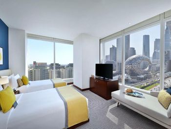 В распоряжении гостей 471 номер с современным дизайном интерьера и многочисленными дополнительными удобствами. Благодаря расположению отеля в самом центре города, из французских панорамных окон открывается великолепный вид на Дубай. Эти просторные номера подходят как для семейного, так и для индивидуального отдыха. В каждом из номеров установлен уютный шезлонг, глубокая ванна и бодрящий душ с функцией аэрации воды. Гости могут пользоваться удобным местом для работы, высокоскоростным Wi-Fi и телевизором с большим экраном и технологией Smart TV. Кроме того, в номерах имеются супер комфортабельные новые кровати, белоснежное постельное белье и великолепные пушистые одеяла и подушки.