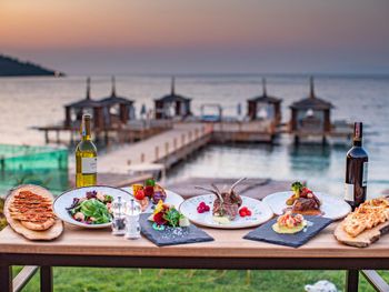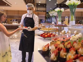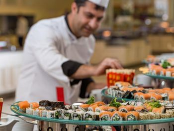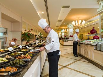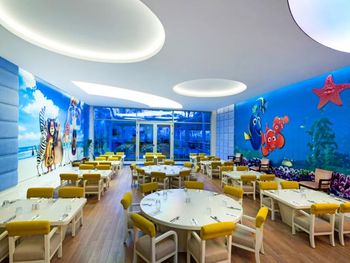 The main Maki restaurant serves breakfast, lunch and dinner in open buffet style. There are 5 à la carte restaurants on site, serving selected dishes from Italian cuisine Loco (free of charge), Morala Sea Food (free of charge), Beach Restaurant Pinsky by Novikov (extra charge), Toronaga Teppenyaki (extra charge) and Radika Turkish Cuisine (free of charge), all of them require pre booking.