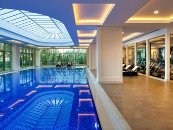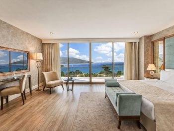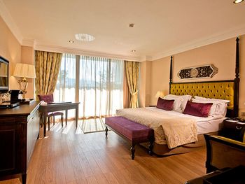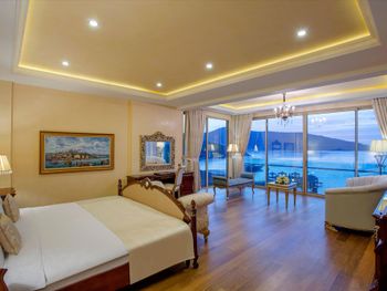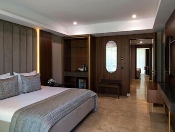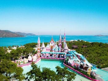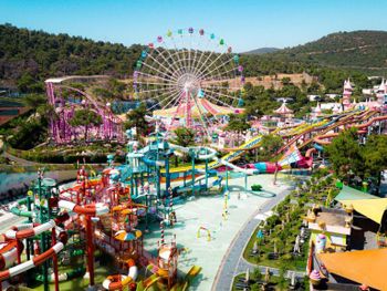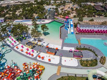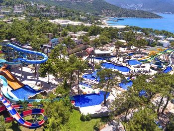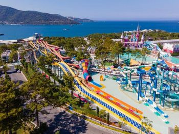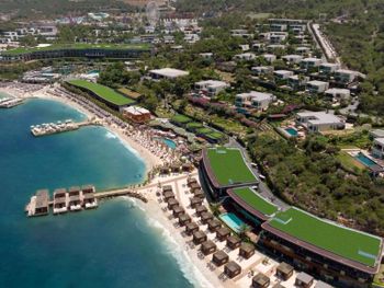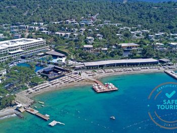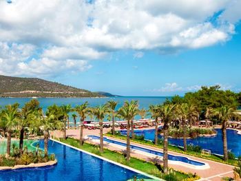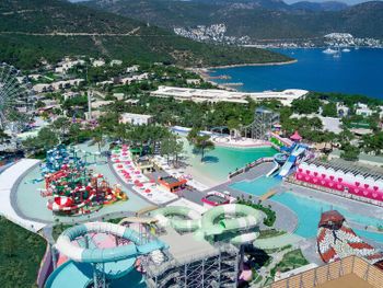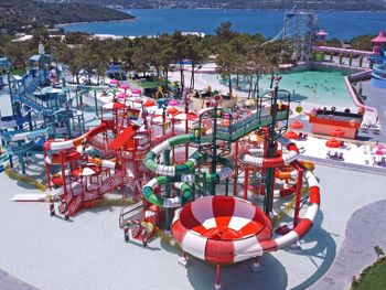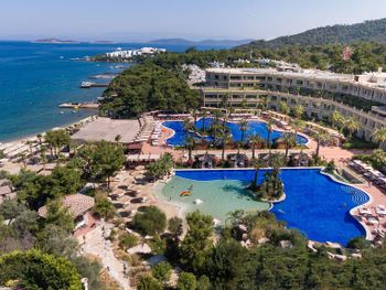 Located in the seafront in Torba Bay, surrounded by pine trees, Vogue Hotel Supreme Bodrum, has a total surface area of 400,000 m² and features outdoor pools with 33 water slides at Candyland area, spa facilities, a sand pit and an amusement park for kids. This 5-star property has two beaches that are 750 metres long in total. The hotel offers ultra all-inclusive service.