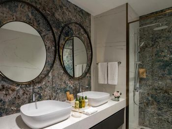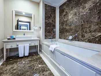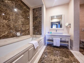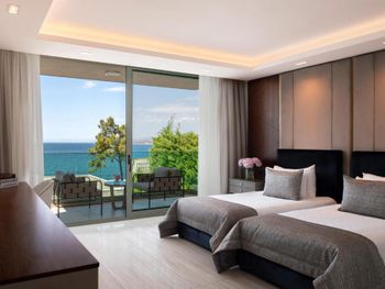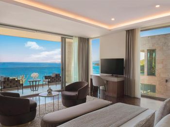 Наконец я могу оставить отзыв об этом ужасном отеле.первое - можете не ждать, что вас встретят в отеле и как-то поприветствуют. Далее, мы ждали свой багаж с ресепшен до номера 4!часа! Его просто потеряли. В номерах все старое, уставшее, холодные полы. Никаких приветственных фруктов или вина. Ноль. Разбавленная до нельзя косметика (шампунь, бальзам - невозможно помыть голову от слова совсем) Питание ежедневно однообразное. Один раз были суши. Главный ресторан - настоящая столовка. Рестораном точно назвать нельзя. Столы всегда грязные, липкие, посуда не промыта. Столы не накрывают( салфетками, или скатертями - ничем). Официанты не подходят от слова совсем)) хочешь заказать - идешь к холодильнику или кофемашине и берешь сам. Детского меню нет, детского питания тоже, смесей тоже нет, соков для детей нет, молока тоже))))) Кока кола zero подается на разлив)))) после того, как мы в городе купили себе отдельно банки колы и поставили их в холодильник, сотрудники отеля решили, что мы больше в Кока-коле не нуждаемся и перестали ставить ее в бар совсем. Полотенца по карточкам))) на троих -три карты, как хочешь, так и вытерайся, или лежи на них. Последней точкой стало то, что при выезде мы три! Раза позвонили на ресепшен и попросили забрать багаж. Как думаете, кто нибудь забрал? Конечно, нет. В итоге тащили багаж из номера к машине сами. Все это удовольствие за 600€ в день))))) сюда мы больше никогда ни при каких обстоятельствах не вернемся и никому не порекомендуем. Этот отель не 5 звезд и не премиум сегмент. Советуем найти что-то получше за эти деньги