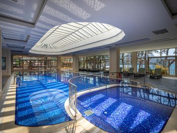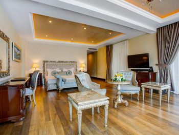 Начиная с приема отеля гостей - отель перегружен. На ресепшен постоянно стоят гости с жалобами, даже при заселении в отель уже начинаются проблемы. Номера старые, неухоженные, уборка отвратительная - всё в грязных отпечатках от предыдущих гостей видимо, окна, зеркала. Постельное белье меняют тол ко, если позвонишь и спросишь почему не поменяли, с так даже не подумают сами это сделать. Полу тоже не моют в номере, только заправляют кровать вот и вся видимость уборки. WiFi ужасный - постоянно приходилось звонить на ресепшен, что не работает WiFi, так до конца отдыха ничего и не сделали. У них как в старых турецких отелях WiFi работает только на ресепшене хорошо, вот и сиди там постоянно, если нужно выйти на связь. Еда тоже средней поршивости рестораном это не назовешь - столовка, постоянно летают мухи над едой, потому что столы не протирают, один встал гость, другой садится и никто нормально стол не убирает. Один раз вообще видели, как у официанта выпал из тарелки с фруктами кусок арбуза, так он его поднял и в этот общий разнос обратно положил, а люди потом возьмут этот кусок и съедят. Ужас и позор такое делать в отеле 5* за 600€ в сутки. Пляж тоже отвратительный наставили впритык дешевых шезлонгов, люди лежат друг у друга на головах почти. Мы такого не видели давно. Ни одного дня не провели на их пляже. Благо, что на территории отеля есть платный пляж Pinsky - там всё приятненько, чисто, вкусно и комфортно лежать загорать и плавать без кучи народа вокруг. Но этот пляж не относится к отелю, хоть на территории, но платишь отдельно. На него можно приезжать и из других отелей отдохнуть, но жить в этом отеле это просто ужас какой-то. Никогда не вернемся в этот отель и никому не советую. Очень много недовольных гостей постоянно у них на ресепшн и конечно это не просто так. Даже некоторые сотрудники сами говорят, что им стыдно перед гостями за этот отель. Хуже отеля 5 звезд за эти деньги я не видела. Отвратильный старый отель и сервис 0.