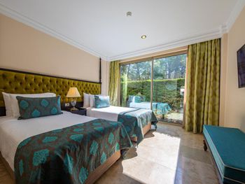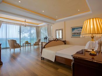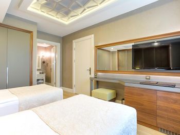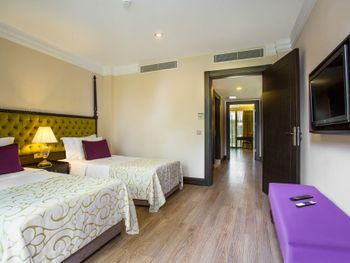 Сразу после бронирования прислали письмо что не гарантируют наличие номеров с одной большой кроватью. При регистрации никакой информации об отеле не дали, очень занятые, просто указали в сторону где стояли носильщики багажа. Я бронировал номер с видом на сад, на ресепшен меня порадовали, что сделали апгрейд до номера в главном здании, я был рад, но не долго... номер был на -1 этаже прям над кухней, из Окна была видна только крыша ресторана и технические конструкции, лучше Окна не было бы, я даже персоналу бы не пожелал так жить. В номере сильно пахло канализацией, все стены и мебель обшарпаны и в пятнах, наш маленький ребёнок быстро собрал на себе пыль и грязь ползая по полу номера. Организация переезда в другой номер - ждали в коридоре с ребенком на руках час! По утрам был сильный табачный дым в коридоре, и легкая прокуренность номера не выветривалась. Коридоры, помещения общего пользования обшарпаны, ковёр часто порван и в пятнах, главное здание требует срочного ремонта, местами напоминает заброшенную гостиницу. Еда однообразная даже для Турции, максимально экономно и не вкусно, обедать и ужинать часто ездили в город. Я бы хотел увидеть как кто-нибудь из руководства попробует съесть сэндвич с буфета со сладостями. Уверен эти сэндвичи являются финальным звеном в бесконечном и очень экономном круговороте продуктов в этой гостинице. Персонал не воспитан и очень низкого уровня, с «улыбкой» работает только 10% стафа, остальные с таким видом, что им не платят зарплату годами, официанты часто делают вид что не видят и не слышат гостей, подъедают на рабочем месте, базарные уборщицы орут на весь коридор, что наш ребёнок просыпается в номере на дневном сне с закрытой дверью. Для меня очень смешно, что такая позорная гостиница напротив входа поставила элитные автомобили в стиле заведений высокого уровня Монако. Аля карт рестораны через пол часа работы переполняются дымом. На пляже в песке множество осиных гнёзд. Wi-Fi работает нестабильно.