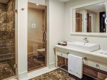 Лунапарк выглядит довольно старым и изношенным. Жили в основном здании и очень не понравился тот факт, что несмотря на стоимость (а она довольно приличная) отель не поддерживается в соответствующем цене состоянии. Приносили полотенца с заплатками, система кондиционирования давно не чистилась, на гигиенических средствах явно экономят, при заселении постельное белье было застиранным настолько, что было все в неприятных на ощупь комочках, душ протекал, полочка для гигиенических принадлежностей болталась под углом 45 градусов. Понимаю что отель старый, но если выставляется такая стоимость за проживание - все должно соответствовать, несмотря на год постройки. До 12 ночи прямо за окнами проходили ежедневные развлекательные мероприятия и ощущение было что проходят они прямо у тебя в номере. Часть персонала не говорила ни на русском, ни на английском - непонятно было как с ними коммуницировать. Оставленные на лежаках или в ресторане вещи не возвращались по той простой причине (как выяснилось случайно, они об этом не говорят конечно) - что комната для утерянных вещей была переполнена и они просто не могли в ней ничего найти (впервые сталкиваюсь с подобным). Общее ощущение осталось таковым - отель с остатками былой роскоши по оверпрайсу. Наслышан о том, что когда-то это был действительно достойный премиальный отель, но время идет, а следить и поддерживать этот отель, у текущих владельцев, видимо нет ни времени, ни желания.
