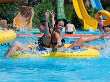 Хорошие водные горки для детей и взрослых. Не сильно хлорированная вода.