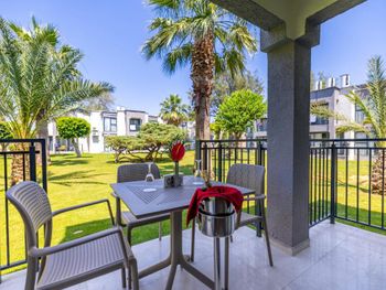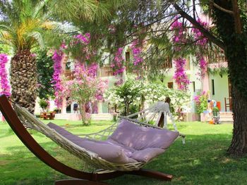 Большой плюс размещения - одельные коттеджи на несколько входов, разбросанные по всей территории. Ни лифтов, ни скученности. В номере все опрятно, все работает, горячая вода без проблем. Территория очень зеленая, благоустроенная, заполнена интересными красивыми растениями, есть гранатовые и мандариновые деревья. Вечером можно долго гулять по зеленым улочкам. Прямо на территории много магазинчиков с одеждой и пляжными аксессуарами.