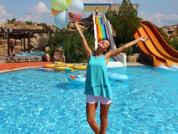 Хороший бассейн, горки.