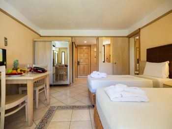 Уставшие номера, довольно грязно, если не оставлять чаевые - почти не убирают. Еда по утрам одинаковая, большие очереди за омлетом, если не ждать - только блины. Обеды и ужины чуть лучше. У ребёнка был ротавирус - подозреваем бассейн. Анимация средняя, но можно ходить в соседний «братский отель», там было интересно.